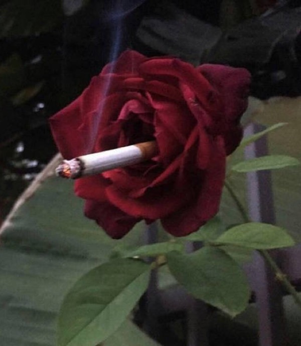 You can see this rose has taken up the smoking habit. I guess it's ignored the surgeon generals warning because it hasn't been proven detrimental to plants.