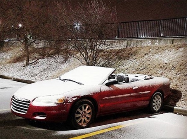 Get your snow chains at Walmart especially if you have a convertible. You might also need a top to prevent the snow from getting on top of your head.