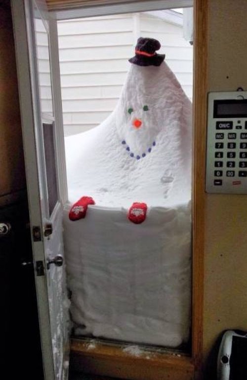 Knock knock. Who's there? Snowman. Snowman who? Looks like this snowman is looking for some place warm. Don't let him in!