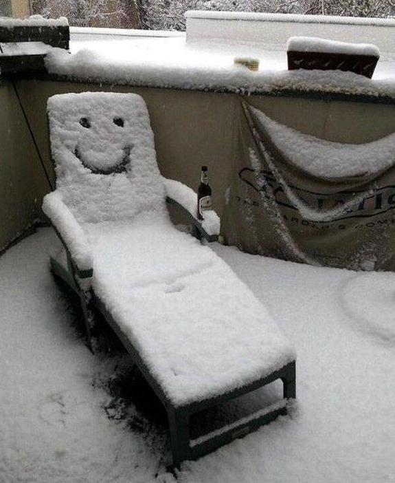 Look dad I made a snow man that looks like you, and he even has a beer how cute is that.