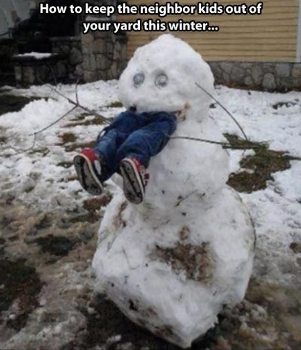 Snowman Snow Scarecrow - How To Keep Kids Out of Your Yard This Winter