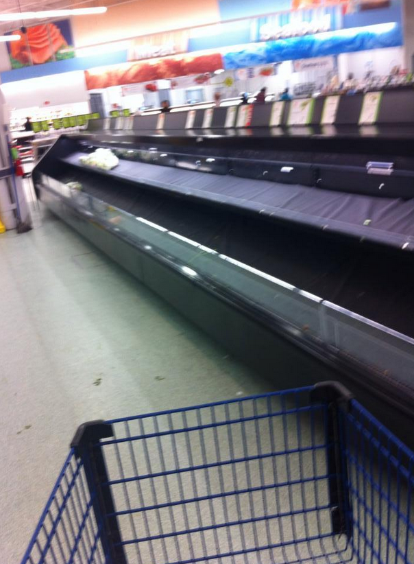 I walked in to my walmart in st louis mo and all the shelves with food ware empty