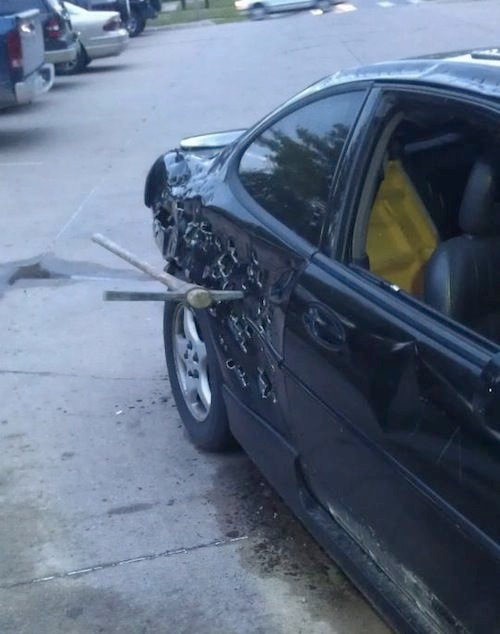 This girl might have been a little upset and decided she wanted revenge. Those holes are some big in the side of the car it looks like the scene from the godfather