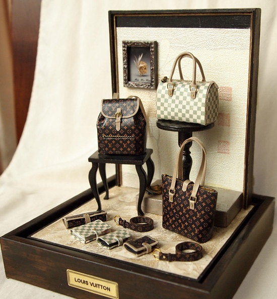 Louis Vuitton fashion items. Who wouldn't want them all? Beautiful, imported, stylish accessories. This is a great way to own them all....miniature Louis Vuitton accessories. :)