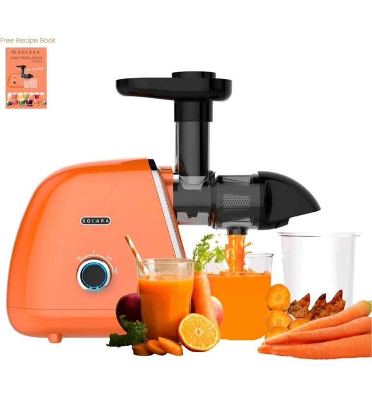 SOLARA Cold Press Juicer for Home, Slow Juicer Cold Pressed, 2 Speeds + Reverse, Easy Clean Masticating Juicer Machine for Fruits & Vegetables, Recipes Included, Orange https://amzn.to/44sMATo