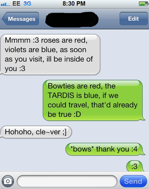 Mmmmmm:3 roses are red, violets are blue, as soon as you visit, ill be inside of you :3