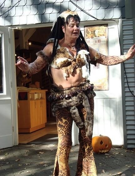 This woman looks like she has reached the pinnacle of fashion for the mountain folk. She is wearing possum and beaver and raccoon. Very nice