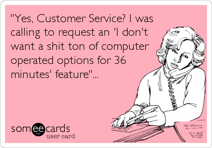 Yes Customer Service? i was calling to request an I don't want a shit ton of computer operated options for 36 minutes feature. ROFLMAO!