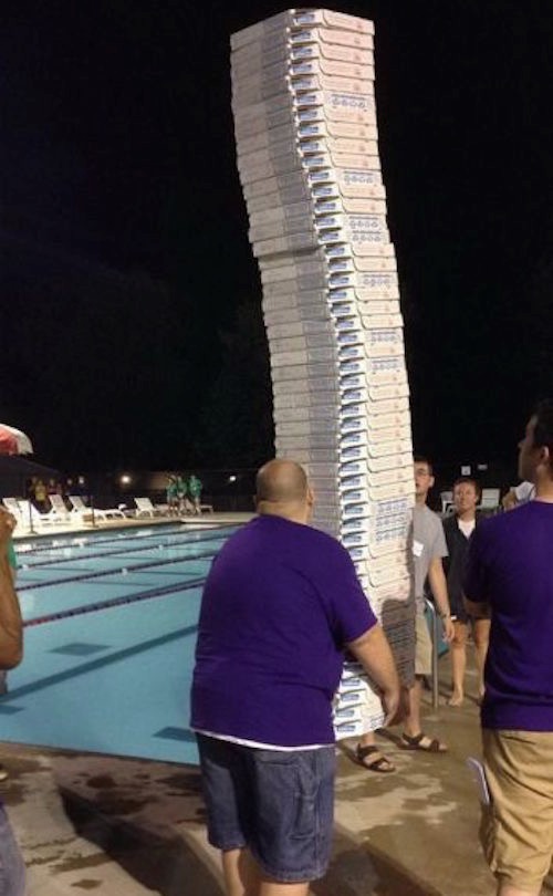 That's a lot of pizza and a lot of dough. Maybe they should consider tipping this guy by taking out a mortgage application. It's not going to be cheap.