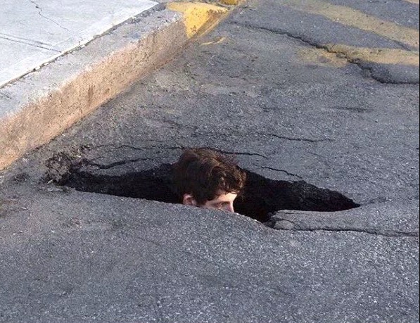 Look out for that speed bump. His head might be higher than that pothole.