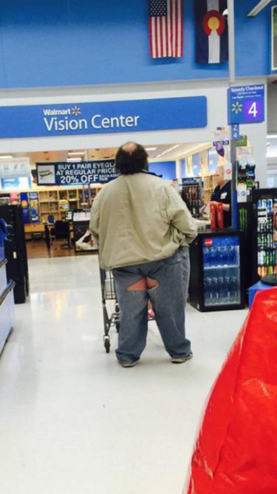 This guy needs to get some glasses fast and take a good look in the mirror. Any more rip in those pants and they'll just fall off.