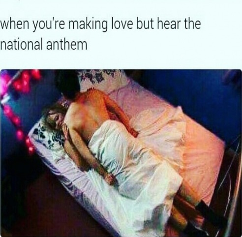 It's never the wrong time to stand at attention when the national anthem is playing.