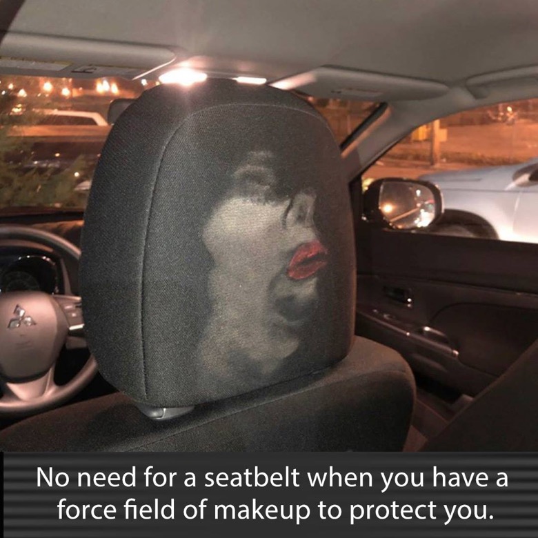 No need for a seatbelt you you have your stay in place makeup. Unfortunately the place you stay is your face planted on the seat in front of you.