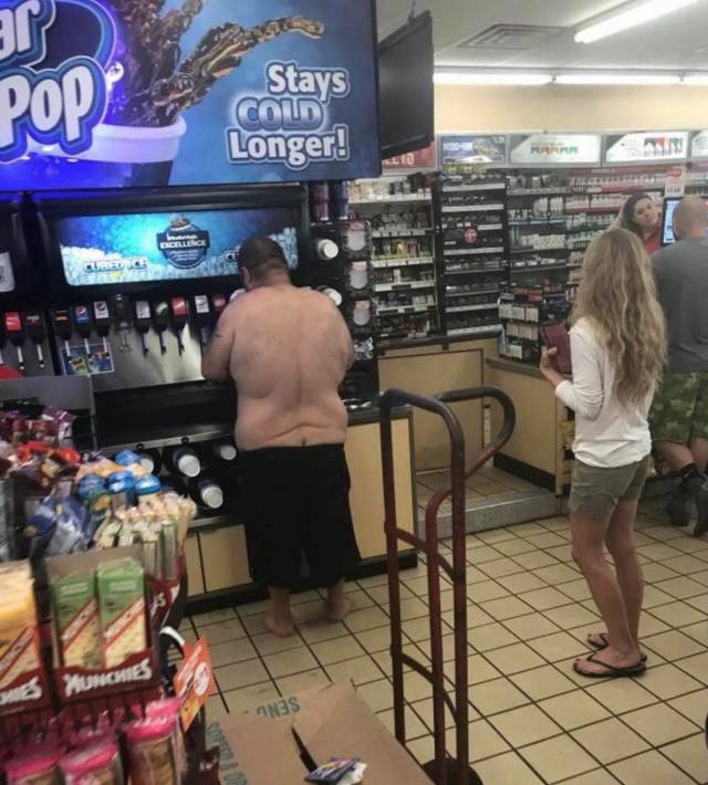 He stays cold longer. I can see why. He needs to put on a shirt and pull up his pants.