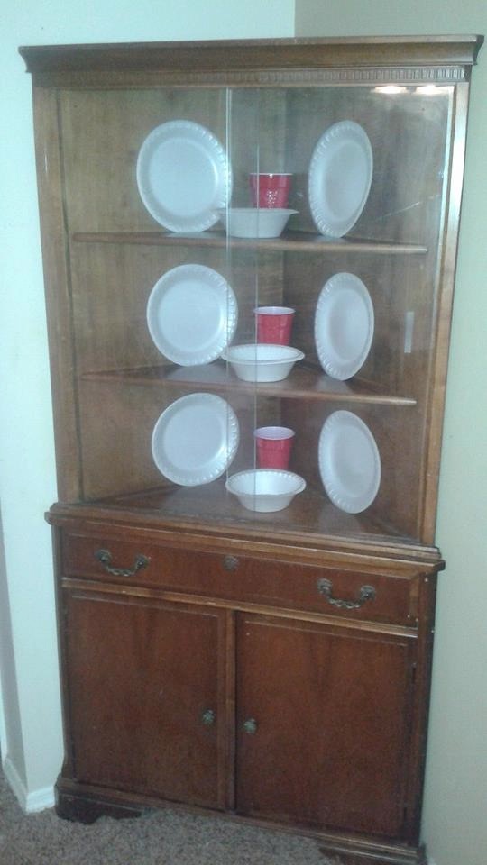 How is this for a redneck china cabinet? It doesn't get any nicer than this. Put your paper plates on display compliments of Walmart
