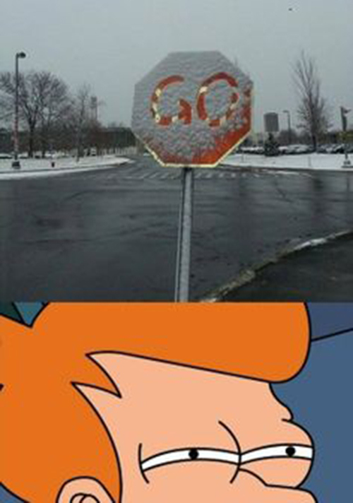 I'm watching this stop sign very closely. I can't risk getting a ticket. Does it say Stop or does it say Go?