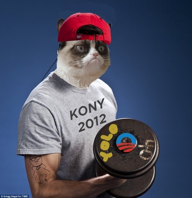 Here is the best viral videos and viral photos of 2012 in one image. A summary of 2012: grumpy cat, kony 2012, yolo, obama, and gangnam style.