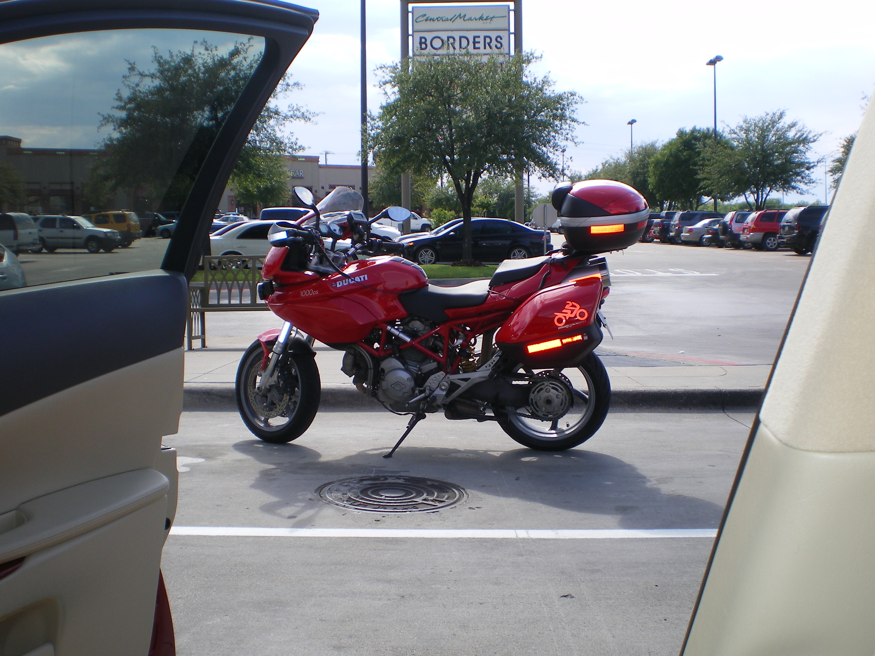 I parked right next to this beauty. A red Ducati. What a sweet bike ! Glad I got the pic.