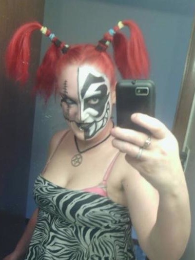 This has to be the scariest selfie ever. She even has on a pentagram. I'm not going to sleep tonight. This is going to give me nightmares