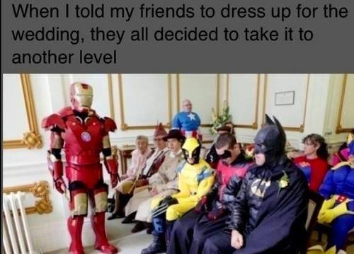 Honestly, this would make for a really cool wedding. I wouldn't mind having my guests dress up like this. As long as I get to be Batman, of course.
