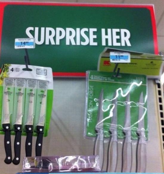 Really surprise her with a set of knives from Walmart. Preferably you should do it in the shower like Norman Bates in Psycho.