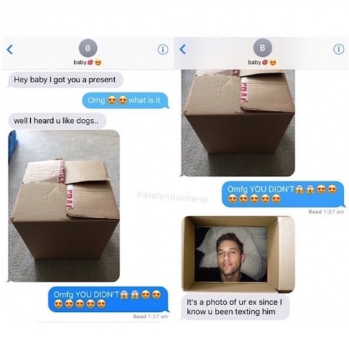 Surprise texts from boyfriends aren't always so wonderful. This boyfriend just busted his girlfriend. I guess that was his last text to her.