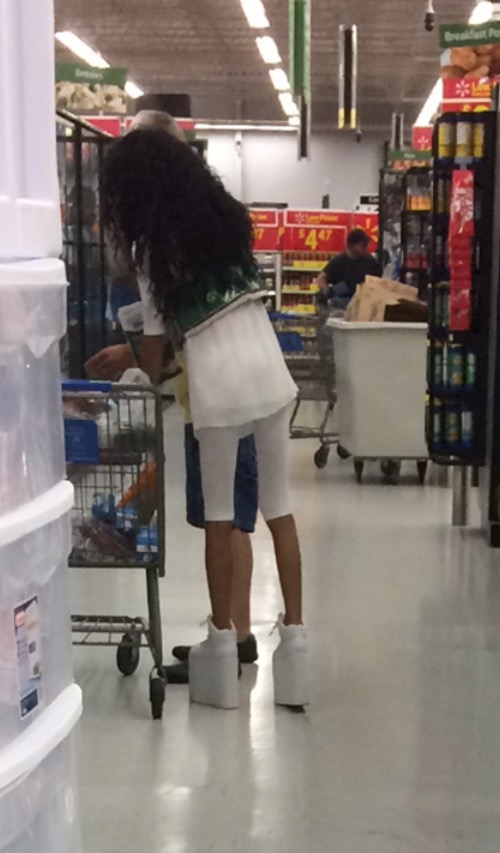 The best thing to do if your tall and skinny is wear platform shoes and become even taller and even skinnier looking. She looks like she's on stilts!