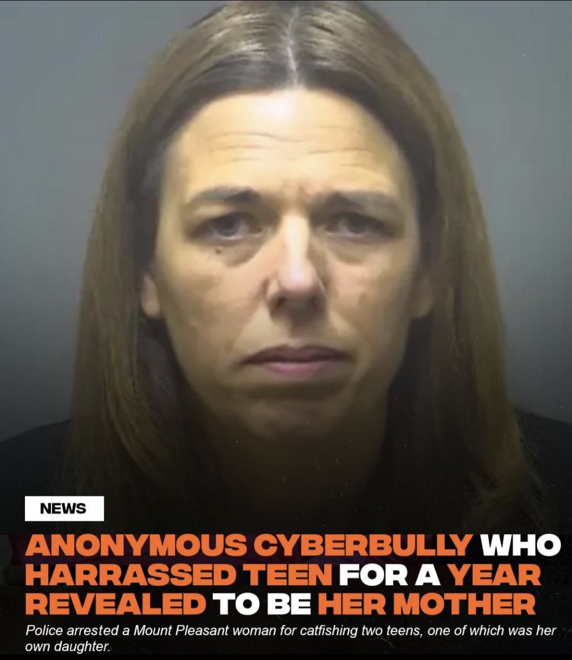 Anonymous cyberbully who harrassed teen for a year revealed to be her mother. Police arrested a Mount Pleasant woman for catfishing two teens, one of which was her own daughter.
