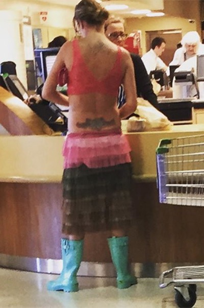 I guess they are just keeping it classy at Walmart. It definitely doesn't look cold enough to be wearing boots. Maybe her lower body needs more heat.
