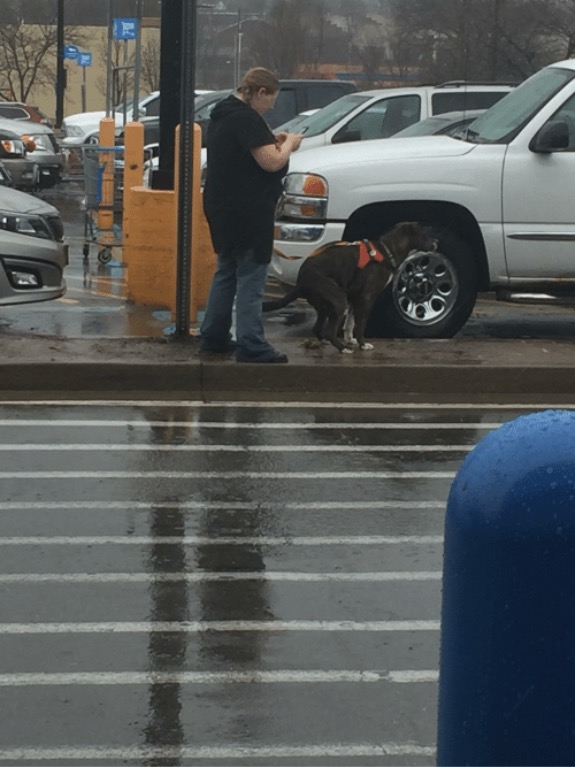 Great place to walk your dog right where everybody walks out of Walmart.