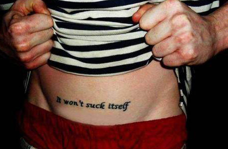 Sorry, too funny not to post. That is a hilarious tattoo if you are secure enough in your manhood to don that kind of tattoo...then I say more power to ya !!!! haha