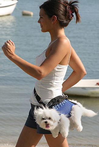 That's not how you walk your dog, when you tell your friends i'm walking my dog the dog acts holy walks you don't carry him in your pers.