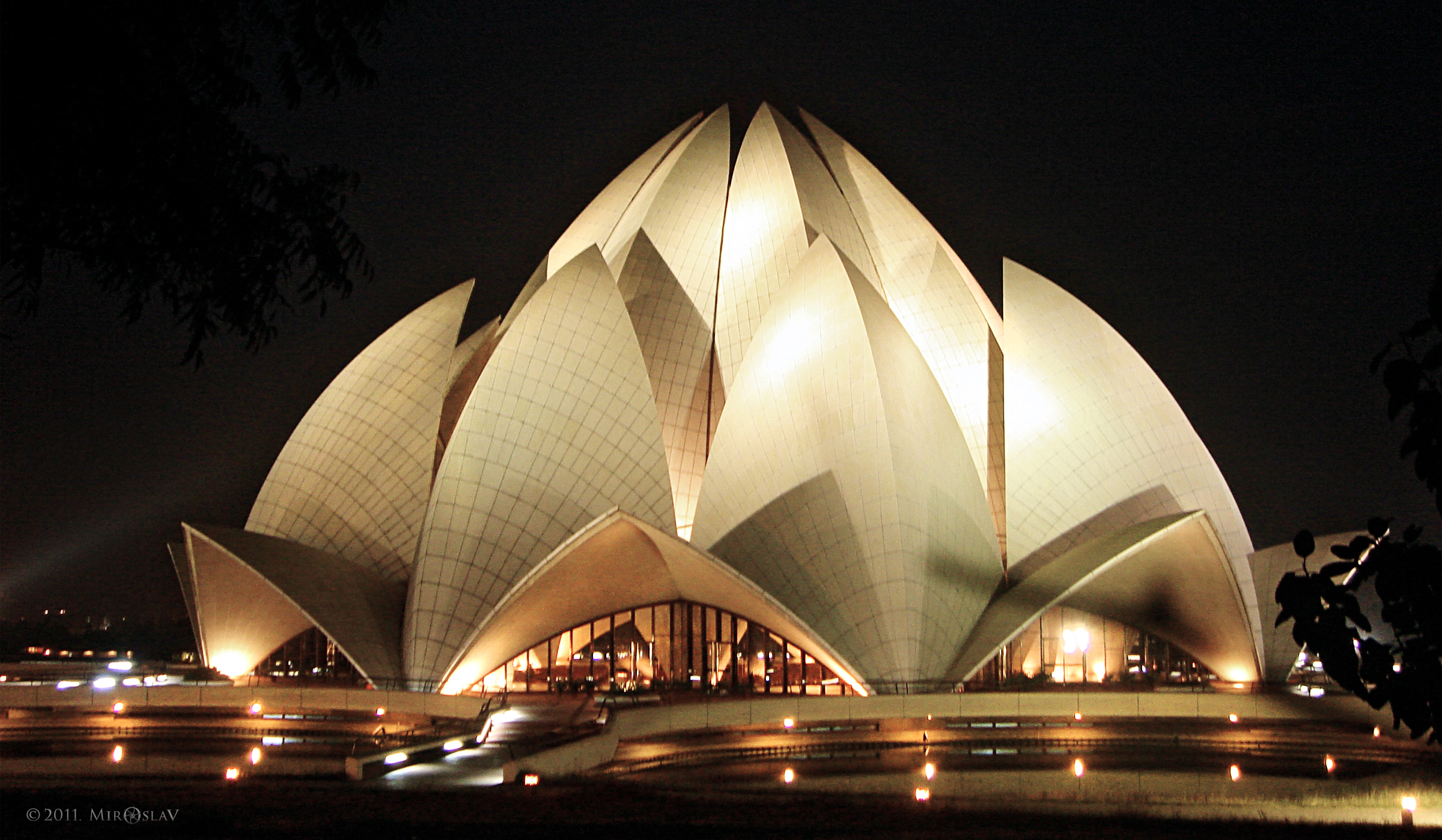 The unique lotus shaped Bahá'í Temple, a marvel of modern architecture. It is made in the shape of a lotus composed of 27 free-standing shining white marble clad "petals" arranged in clusters of three to form nine sides and is one of the major attractions for national and international tourists. It represents the Bahai's faith which is an independent world religion, divine in origin, all-embracing in scope, broad in its outlook, scientific in its method, humanitarian in its principles and dynamic in the influence it exerts on the hearts and minds of men.