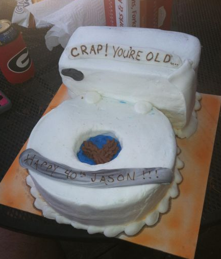 one of my coworkers that sort of had a crash on my made me a birthday cake today, and it looks like a toilet and the sigh sad crap you're to old with little doo doos on the button.