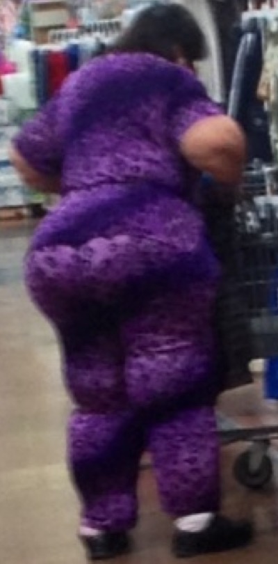 Wow that's an outfit that really jumps out at you. I think if I had to choose one word to describe what I'm seeing it would be purple.
