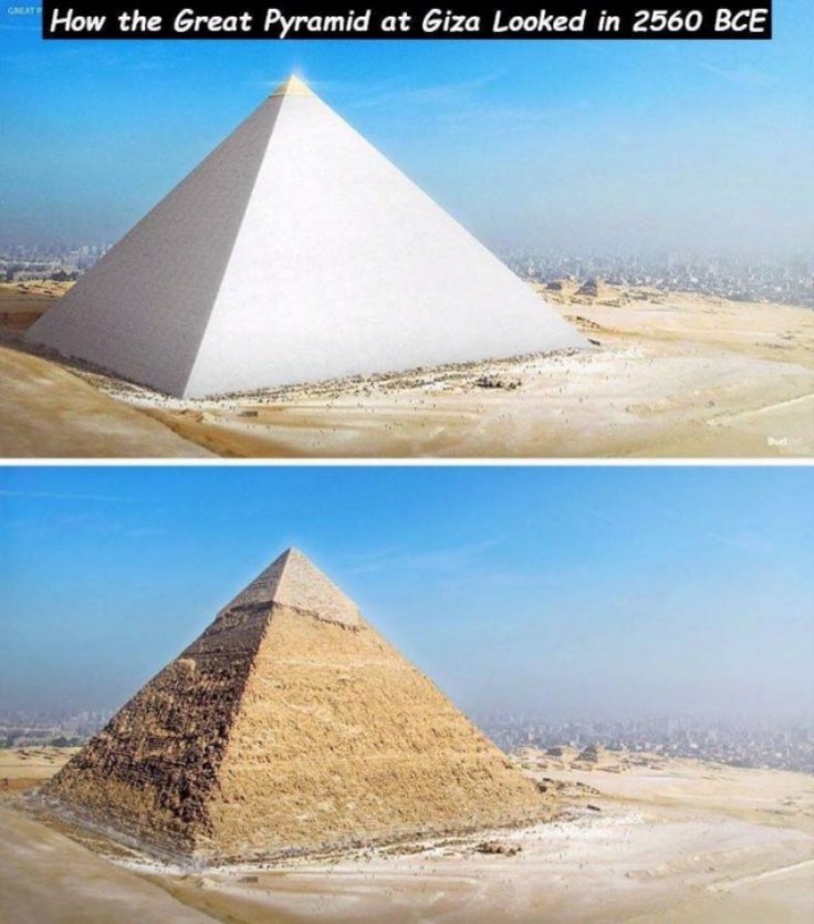 How the Great Pyramid at Giza looked in 2560 BCE. Brand new!