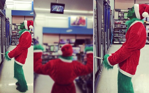 The grinch at walmart? Could be! He knows where to find bargains! He's probably plotting to steal everything at walmart so people will have to buy overpriced crap somewhere else.