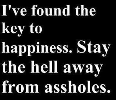 I've found the key to happiness. Stay the hell away from assholes. and you will be happy for the rest of your life.