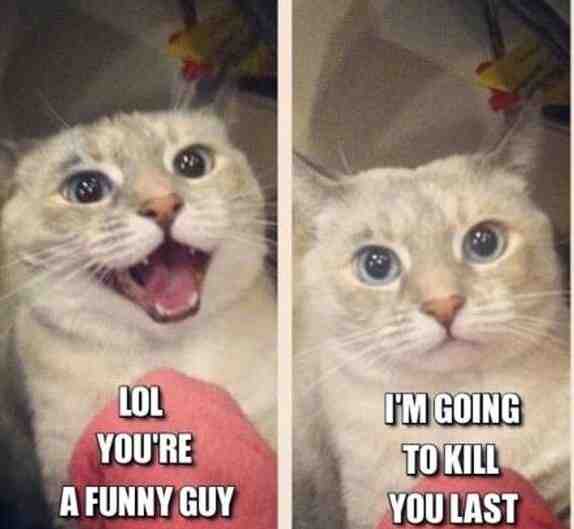 Have you ever seen the killer cat for real. If not then here is a look at the deadly eyes of the killer cat who will kill you last if you are funny enough. If you don't want to get executed by this furry little thing then you better bring out the inner comedian in you. Hahahahahahahahaha.