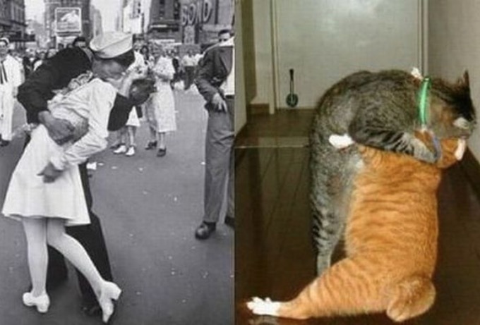 The iconic WW2 photo brought back to life by my two cats. There was a lot more nails and scratches.