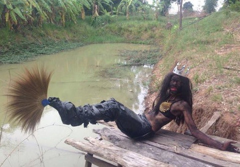 I hope this is a mermaid and not some guy that's tied up and ready to be tossed into the river. He doesn't look like he can swim