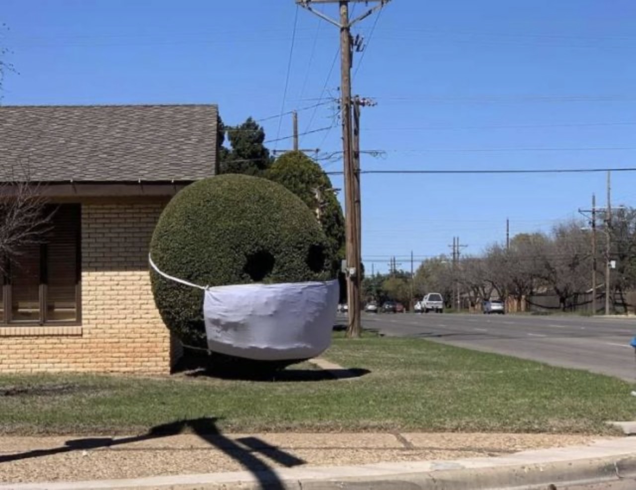 This hedge doesn't want to catch coronavirus. He got the last mask.