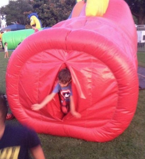 Whoever designed this must have had wanted to teach kids sex education. Coming out of this slide is like being born again. WTF