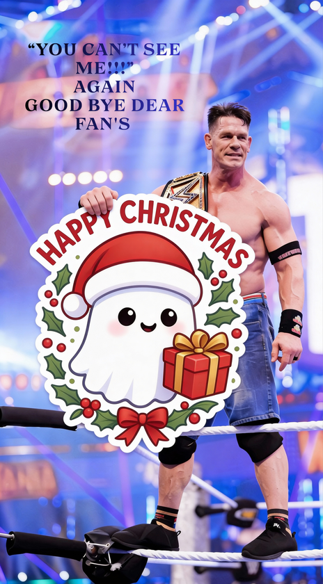 βYou canβt see me!β echoed as a legend marked an unforgettable farewell. This iconic wrestling scene gets a festive twist with a cute spooky Happy Christmas die-cut sticker πβ¨