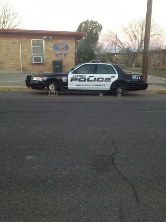 This has to be one scary town. Look at this police car. No wheels! I can imagine what happens to the normal cars. Yikes.