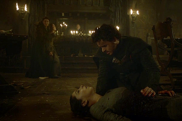 But perhaps the most moving part was when Catelyn, in a desperate attempt to save Robb, took Walder's young wife for a hostage and pleaded to negotiate to allow her son to leave. Expectedly, this failed as Walder doesn’t give a single damn for his wife. Roose Bolton, another turncoat/traidor, stabbed the still heartbroken Robb in the heart (“The Lannisters send their regards) not long before her mother killed Walder’s wife. Catelyn then got murder-slashed in the neck as the episode unforgivably faded to a songless closing credits. The fans then continued to stare in their televisions/monitors for the next 30 minutes in disbelief and heart-break and still traumatized as of this writing.