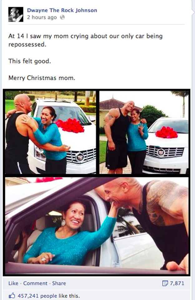 At 14 I saw my mom crying about our only car being repossessed. This felt good. Merry Christmas mom! The riches wrestler in the world just made someone else's life much richer.