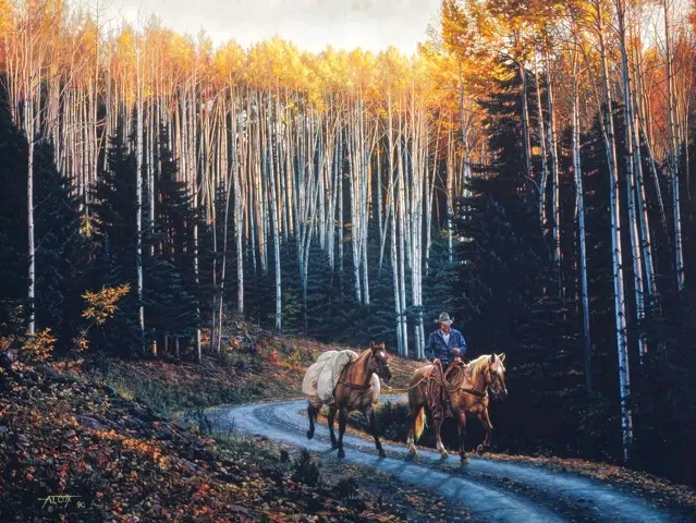 #ThingsArentWhatTheyUsedToBe #cowboy #packhorse #aspentrees #mountains #cowboyart #Westernart #TimCoxFineArt #ranchlife #westernart #ridinghorses #celebrating50years #cowboyartistsofamerica #fblifestyle