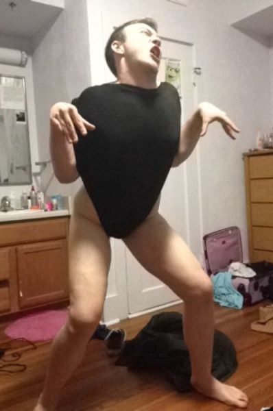 This guy is either trying to be a T-Rex or turtle. Don't know about this outfit it definitely looks like he's completely gone nuts