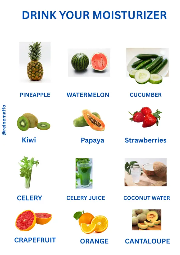 These fruit juices can facilitate skin hydration due to their high water content and beneficial nutrients, including vitamin C , antioxidants and electrolytes.